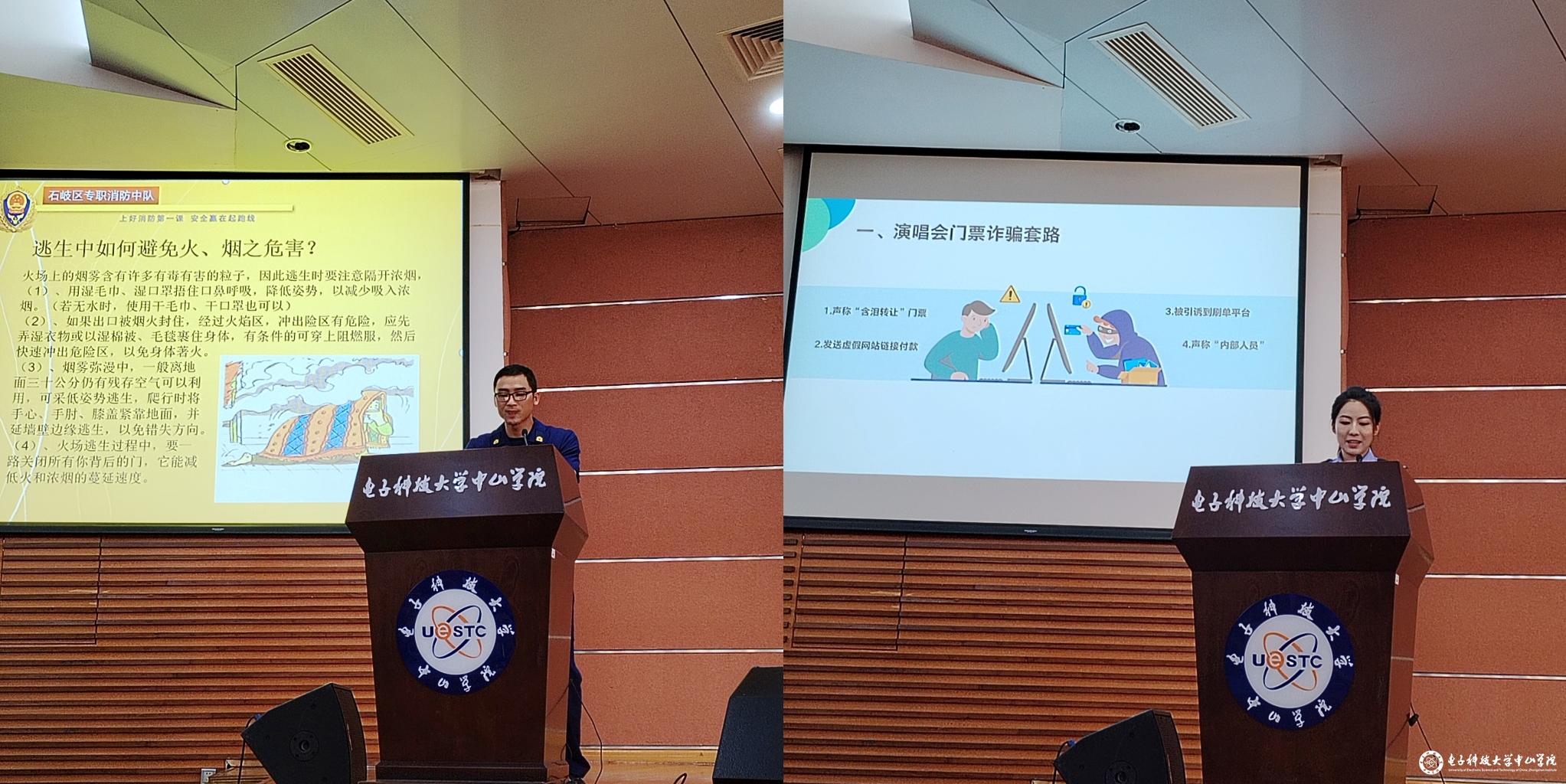 为落实2023级新生入学安全教育,提高新生消防安全及反诈防骗意识和防范能力,9月5日上午,永利官网邀请市消防救援支队城区大队消防员及市公安局石岐分局民警为2023级新生进行消防安全及防范电信网络诈骗讲座。