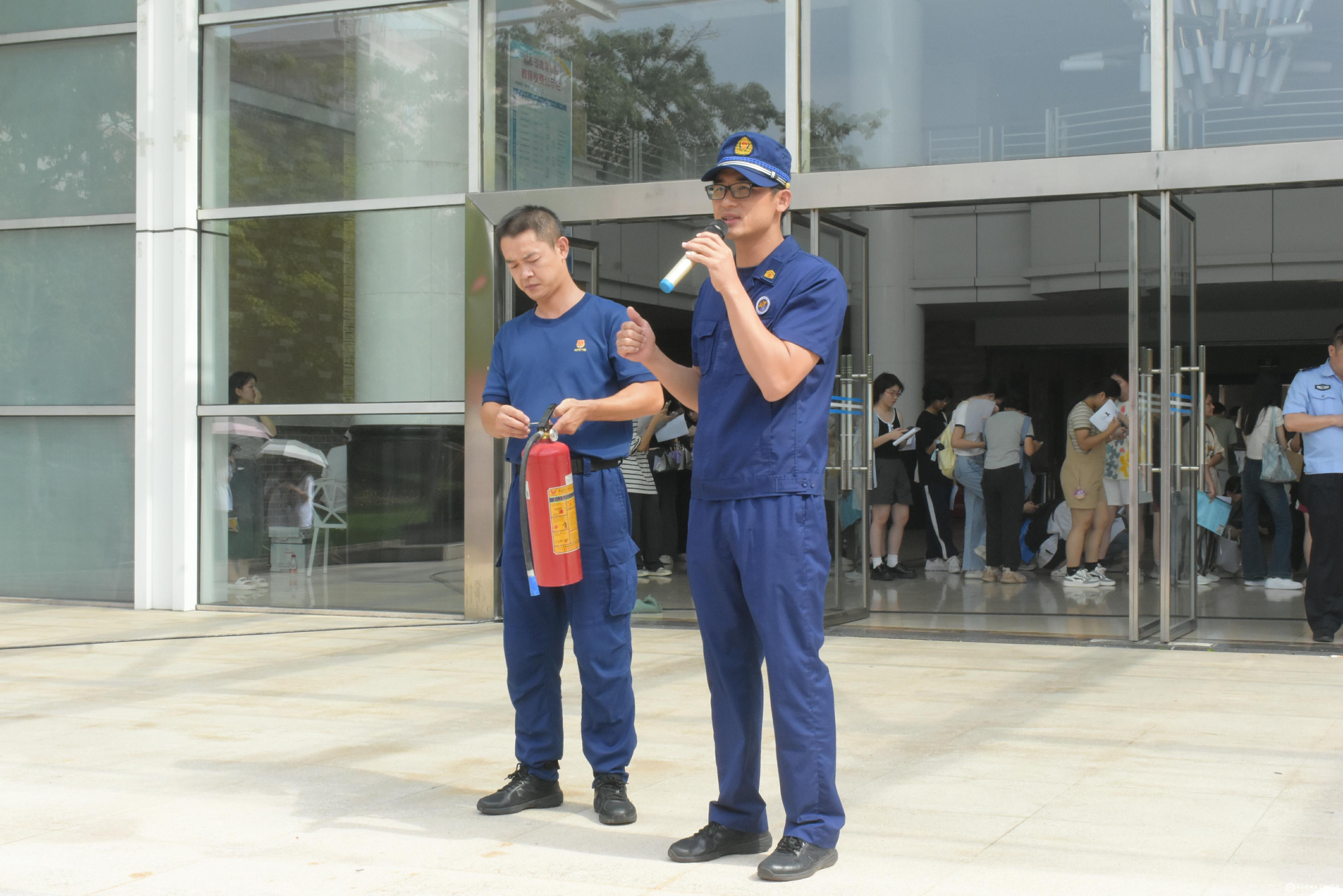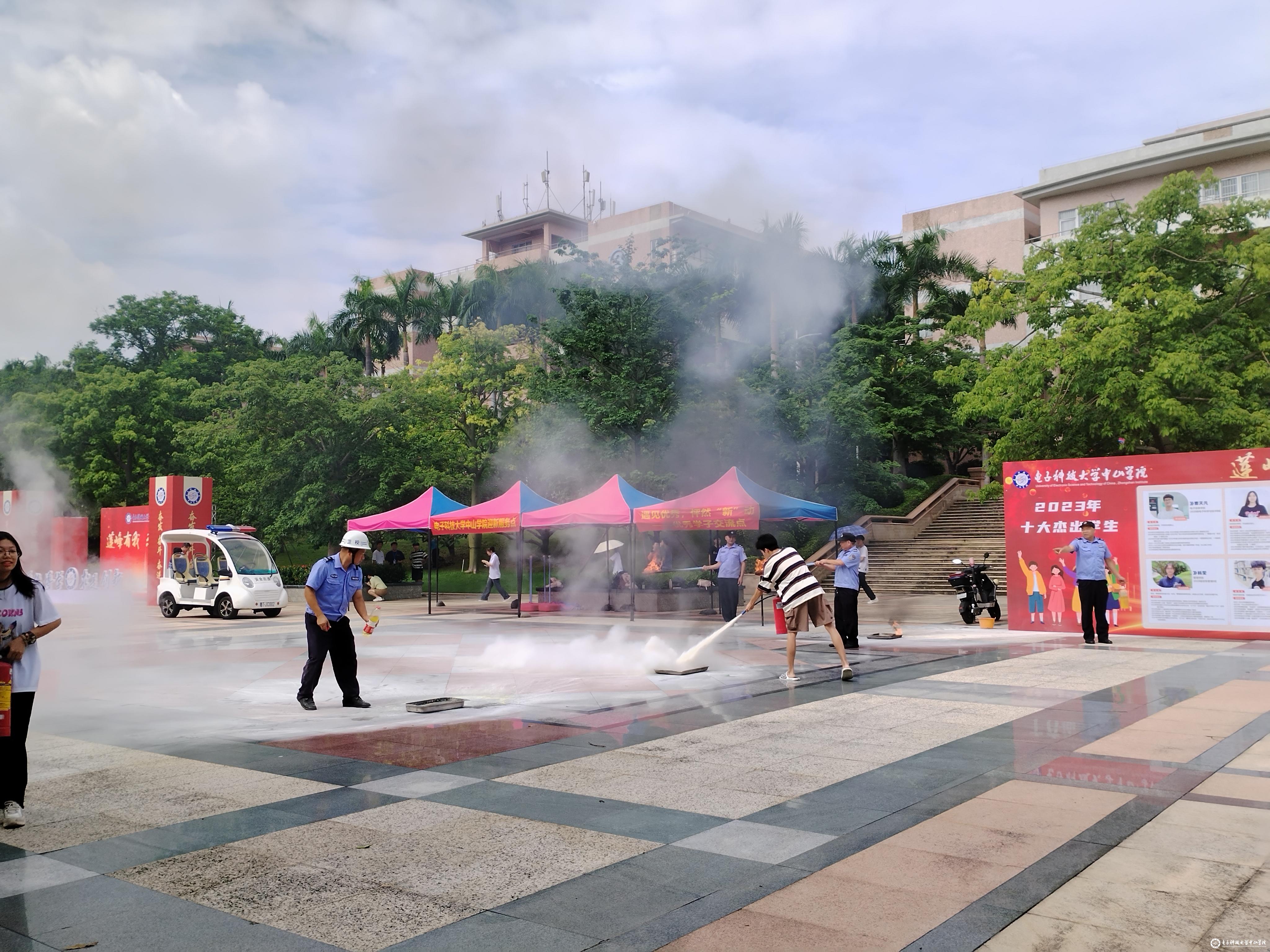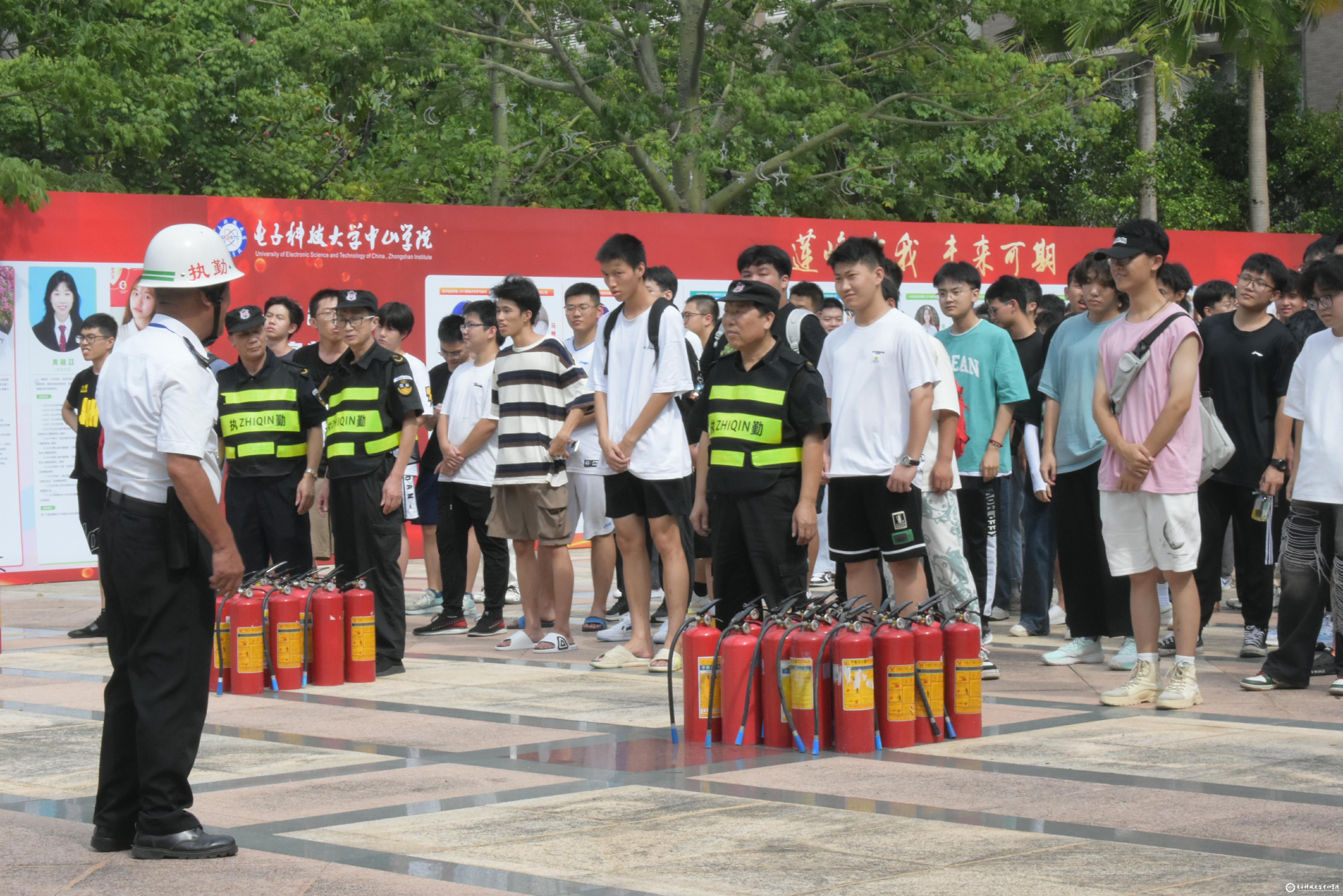 当天下午,学校还组织了500余名新生在实验楼广场开展灭火器实操培训活动。消防员为同学们仔细讲解灭火器的使用方法,随后同学们有序进行了灭火器的实操演练。本次灭火器实操演练活动给各位新生上了一堂生动的安全教育课,有效提高了同学们应对突发火情的自救自护能力。