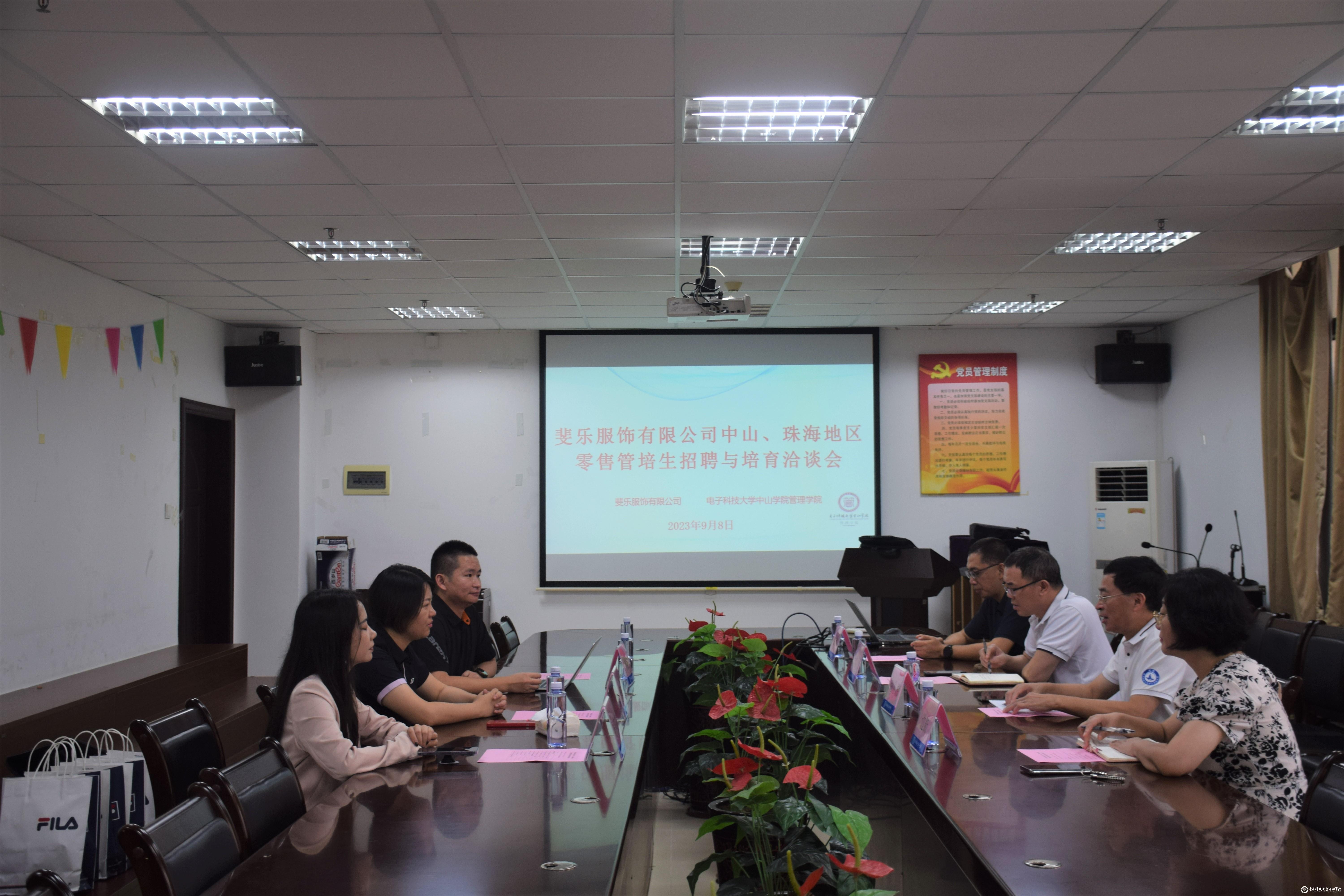 为进一步深化学院与用人单位之间的合作关系,全力攻坚促就业,助力2024届毕业生高质量就业,日前,管理学院与斐乐服饰有限公司举行管培生招聘与培育洽谈会。斐乐服饰有限公司广东大区经理王雨婷、人力资源总监杨鹏、销售经理马莎莎,管理学院班子成员及教师代表参加会议。
