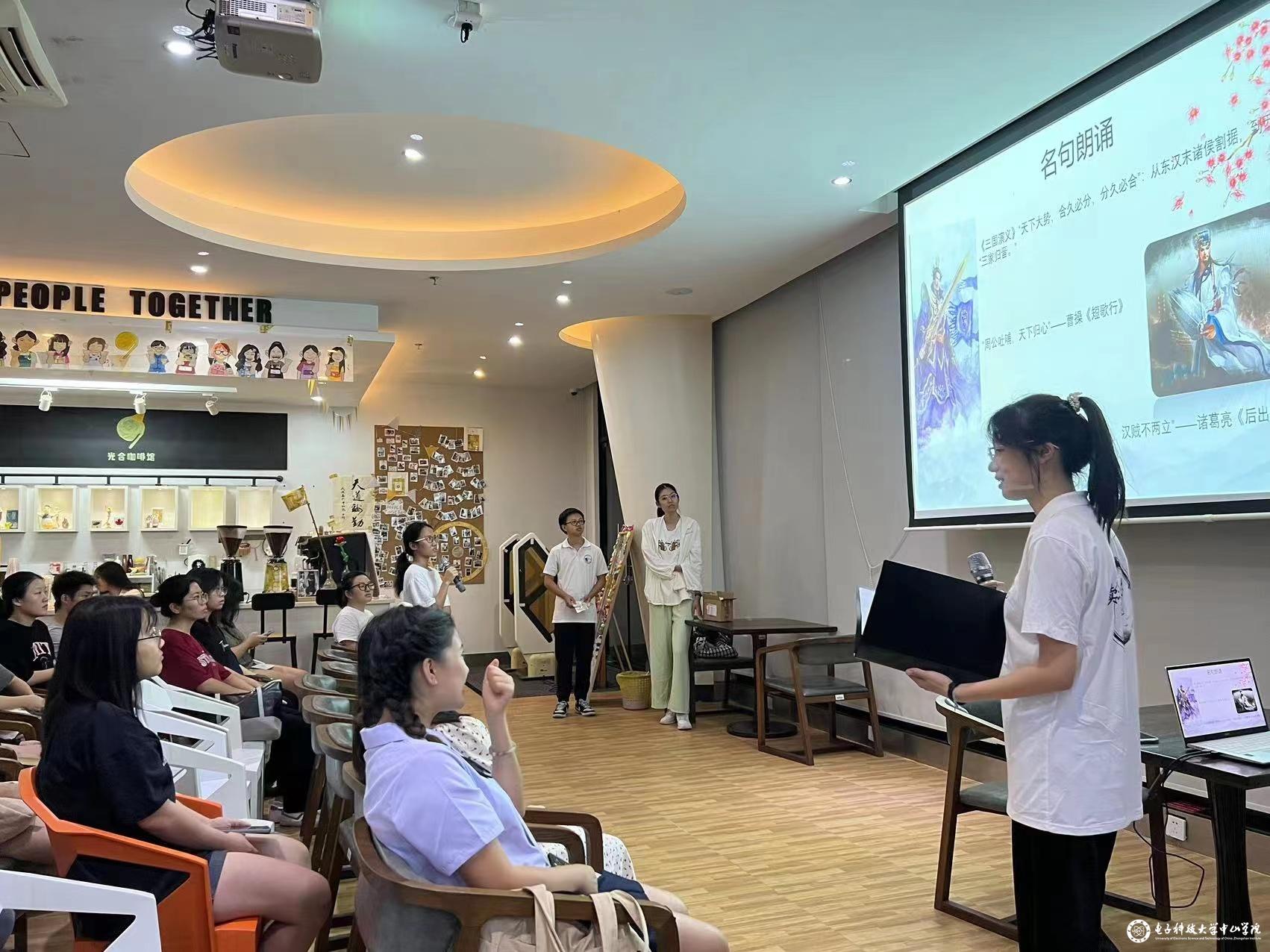 本次读书沙龙第一部分学习分享了习近平总书记关于文化传承的讲话摘录,并通过分享《三国演义》等中华传统书籍,进一步弘扬中华优秀传统文化,增强青年的文化自信。读书沙龙的第二部分由大三、大四年级的读者代表分享了《浮士德》等书籍,分享者与现场观众从历史传承、个人成长到哲学思辨等多个维度结合大学生活展开了热烈讨论。