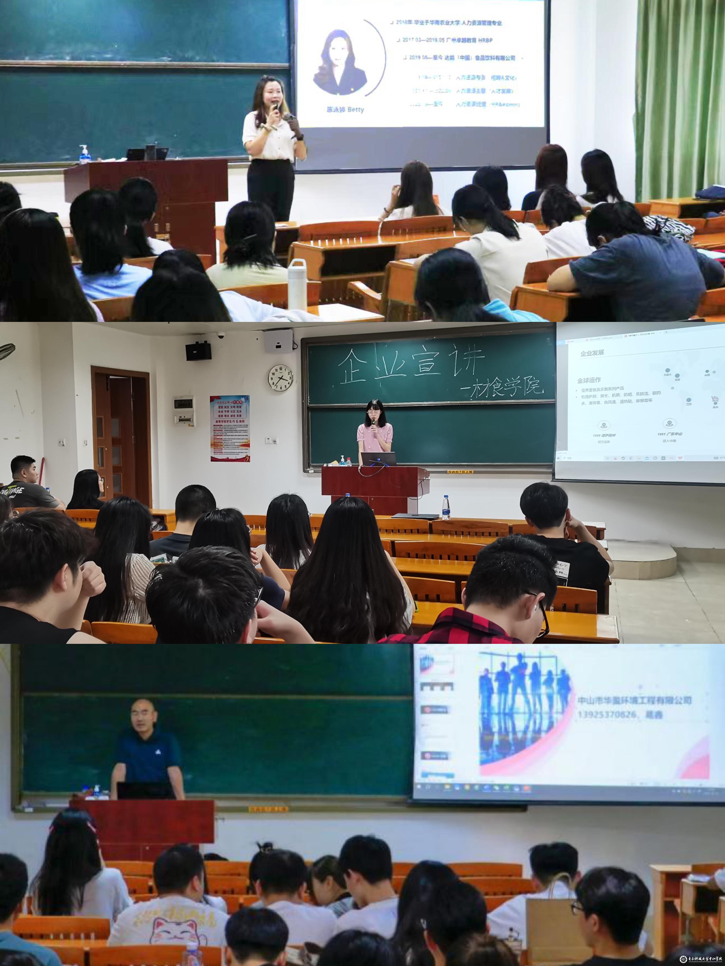 陈泳婷简单介绍了达能(中国)食品饮料有限公司的企业概况后,结合自身经历,分享了企业面试的要求以及准备面试的重要性,并详细介绍了常见的面试类型、流程、方法技巧及职业形象塑造,让同学们了解了企业对人才的要求,并学到了许多面试方面的知识和技巧。刘健莉介绍了曼秀雷敦(中国)药业有限公司的发展历程、薪酬体系和招聘要求,随后,陈嘉菲为在场同学做了“职业化素养”的专题分享,她从职业化形象、职业化态度、职业化沟通三个方面给同学们作就业指导,提出“专业”“商业”“敬业”是提升职业化素养的关键,并结合具体案例让同学们加深了对“职业化素养”的理解。葛鑫是材料与食品学院2004级环境工程专业的毕业生,他为同学介绍了中山市华盈环境工程有限公司的基本情况、经营项目以及环境工程专业的就业方向和工作情况,他结合自身成长的经历对同学们的岗位选择做了有针对性的指导,提醒同学们要善于利用学校平台资源努力提升专业技能,争取考取专业技能证书,尽早明确职业定位。
