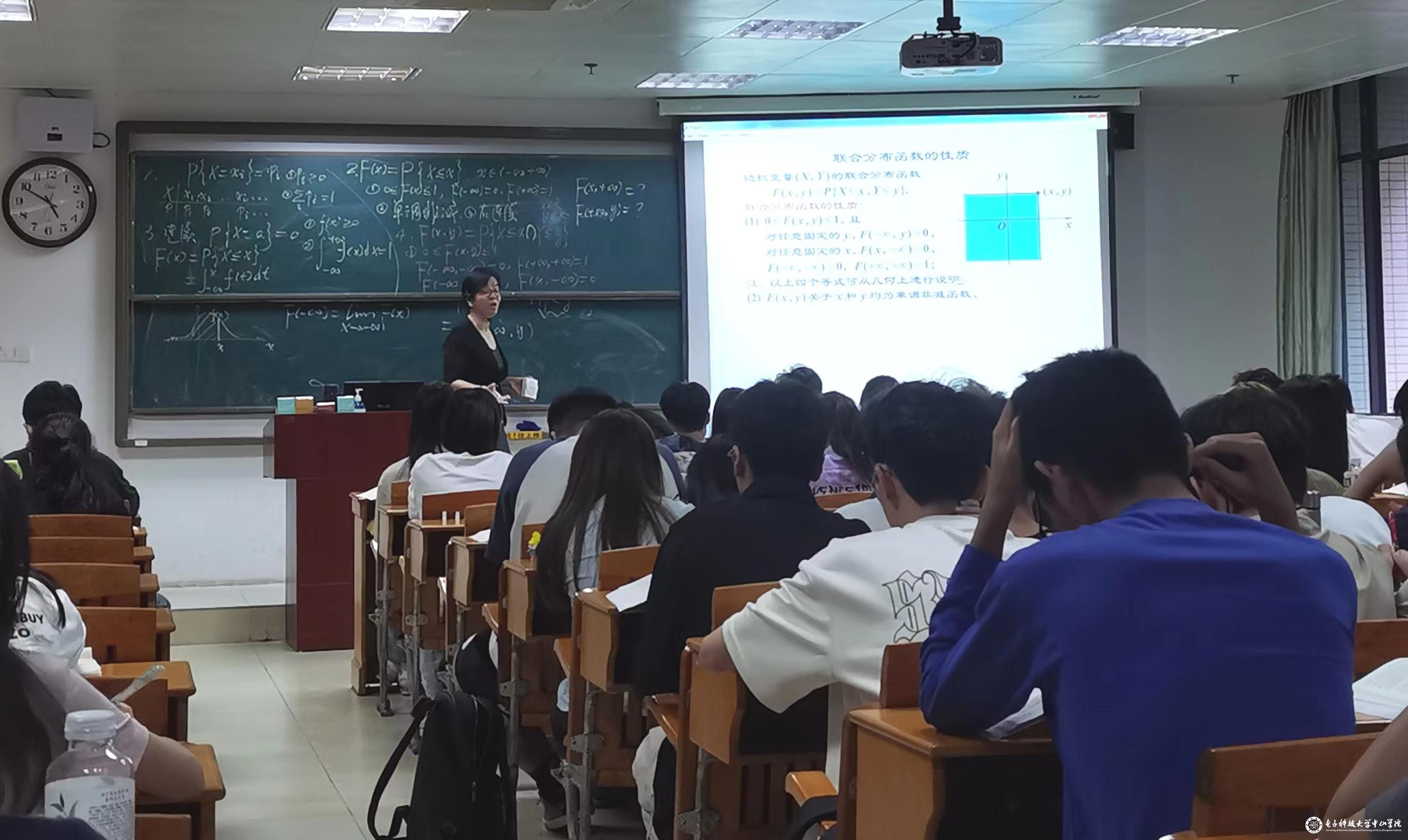 付向红讲课的内容为《概率统计》第三章“多维随机变量”。她先是带领学生对前两章进行了简要回顾,由一维随机变量水到渠成地引入了多维随机变量,并且在讲多维的过程中反复和一维进行对比,引导学生思考问题,解决问题,节奏舒适。她还借助于例题进行计算的演绎,整个教学过程设计清晰明了,过渡自然。