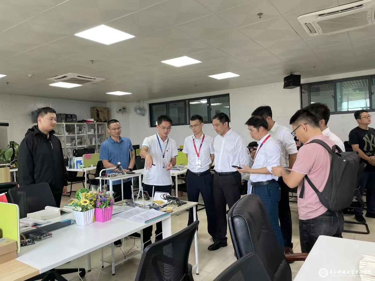 肖慧桥一行在邹昆和刘黎明的带领下,参观了计算机学院产教融合实验室和电子信息学院智能物联与安全通信实验室,听取两个学院的代表性科研成果介绍。