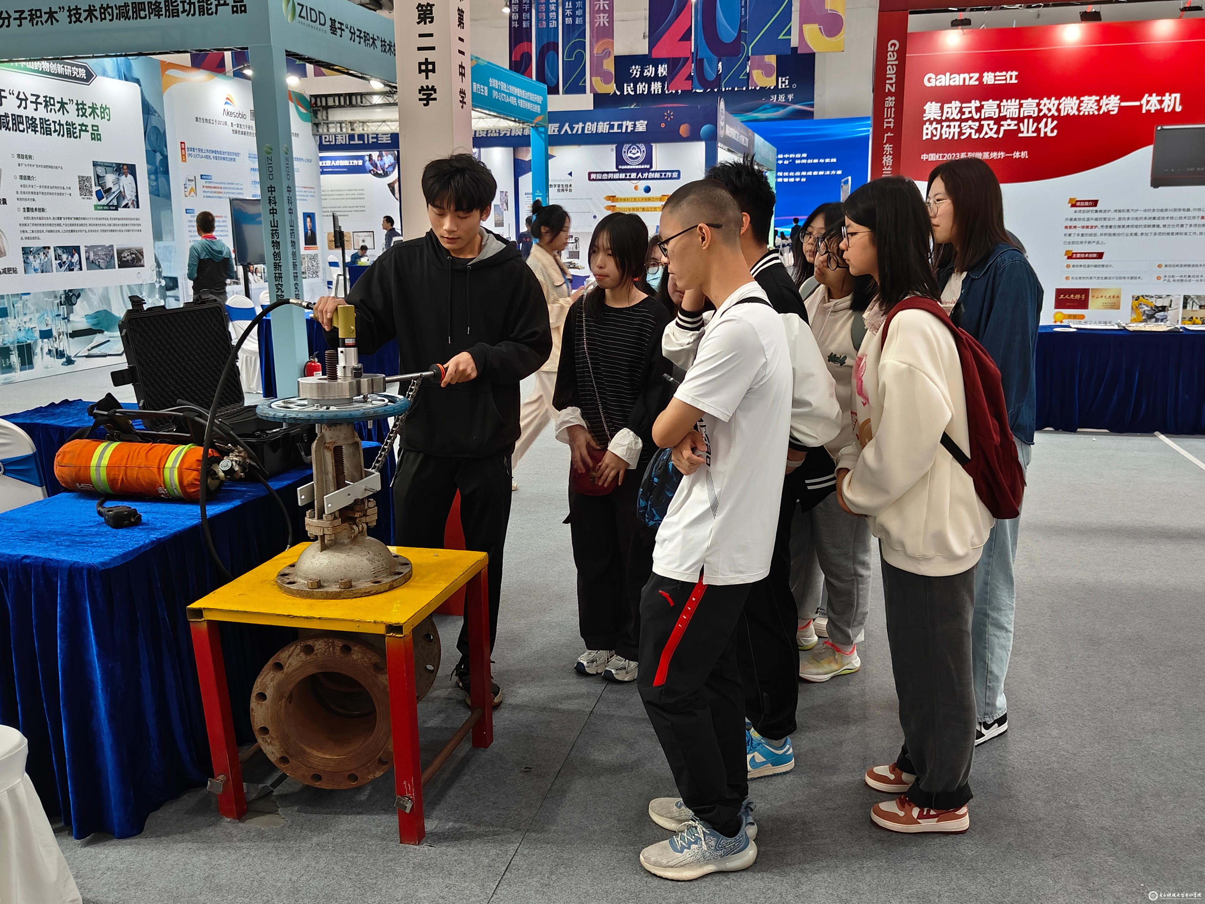 大会以“匠心逐梦,创赢未来”为主题,展示了110个创新成果项目,有“威武”的智能巡检机器狗、味道奇特的“酱油冰淇淋”,还有能捕捉观众动作、模仿观众字迹的书法机器人……在现场,同学们见识到了众多“百闻难得一见”的新产品、新技术,享受了一场高科技的“智慧盛宴” 。