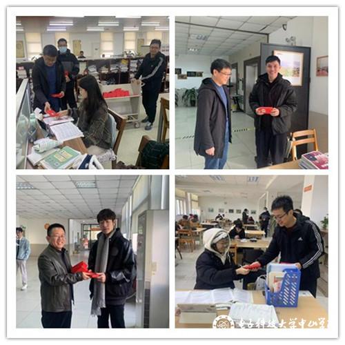 祝福和相伴的脚步从未停歇,图书馆馆长张克荣在不打扰同学们学习的情况下带领馆员安静地穿梭在自习室中,他将写有祝福语的书签递到考研学子面前,为深埋在书本里做最后冲刺的学子送上祝福。一“研”为定的鼓励与祝福写进书签,更写进了大家的心里。“星光不负赶路人,吾尽吾心、终亦无悔,天道酬勤,何时难为!”小小的一份惊喜温暖了考研学子的内心,也抚慰了他们的焦虑。