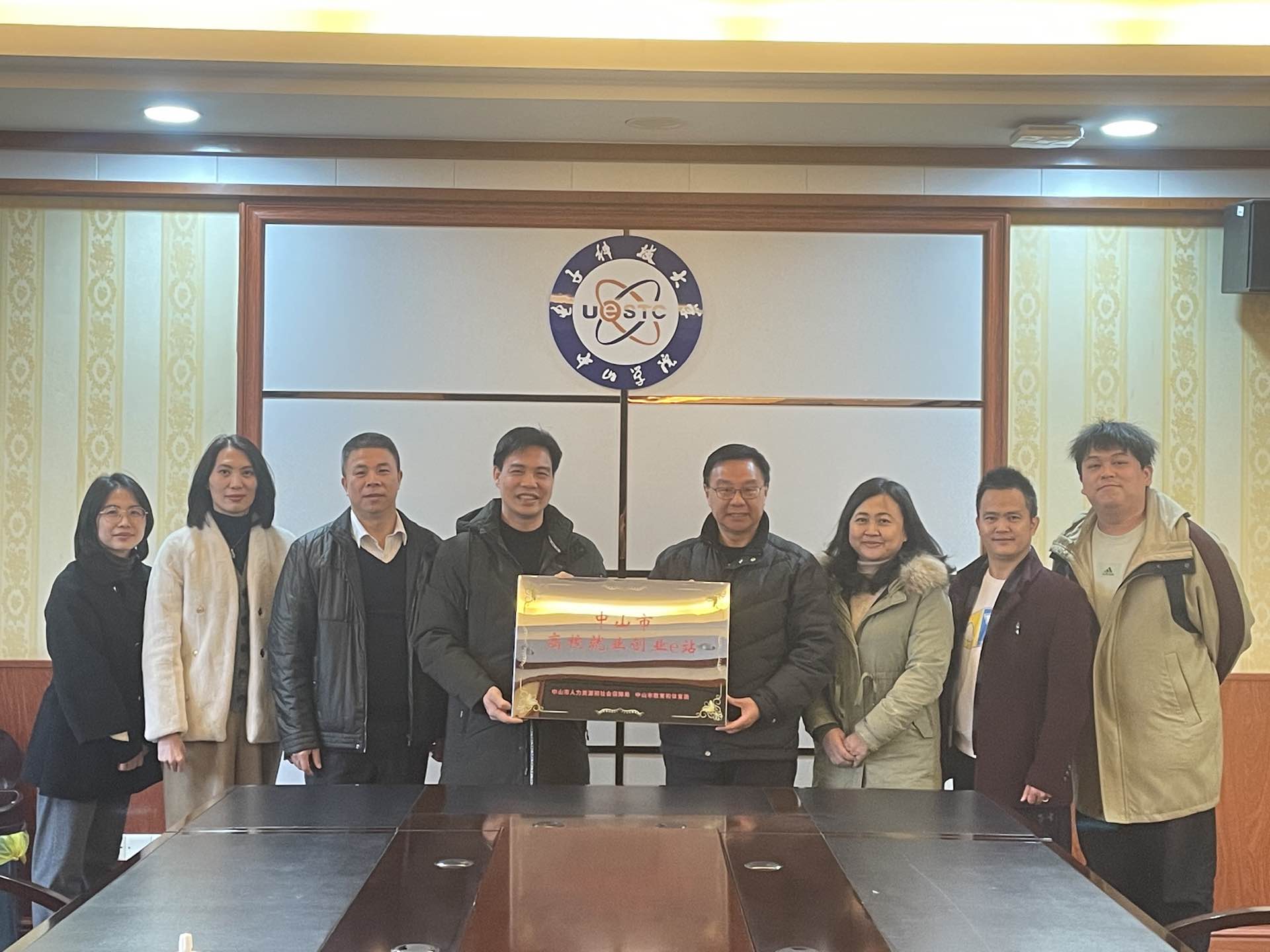 吴海文代表中山市人力资源和社会保障局授予学校中山市高校就业创业e 站牌匾,就业创业e站是中山市人力资源和社会保障局为推动就业创业工作而设立的重要平台,学校将借助就业创业e站,加强就业服务,为毕业生就业创业提供更优质的服务。