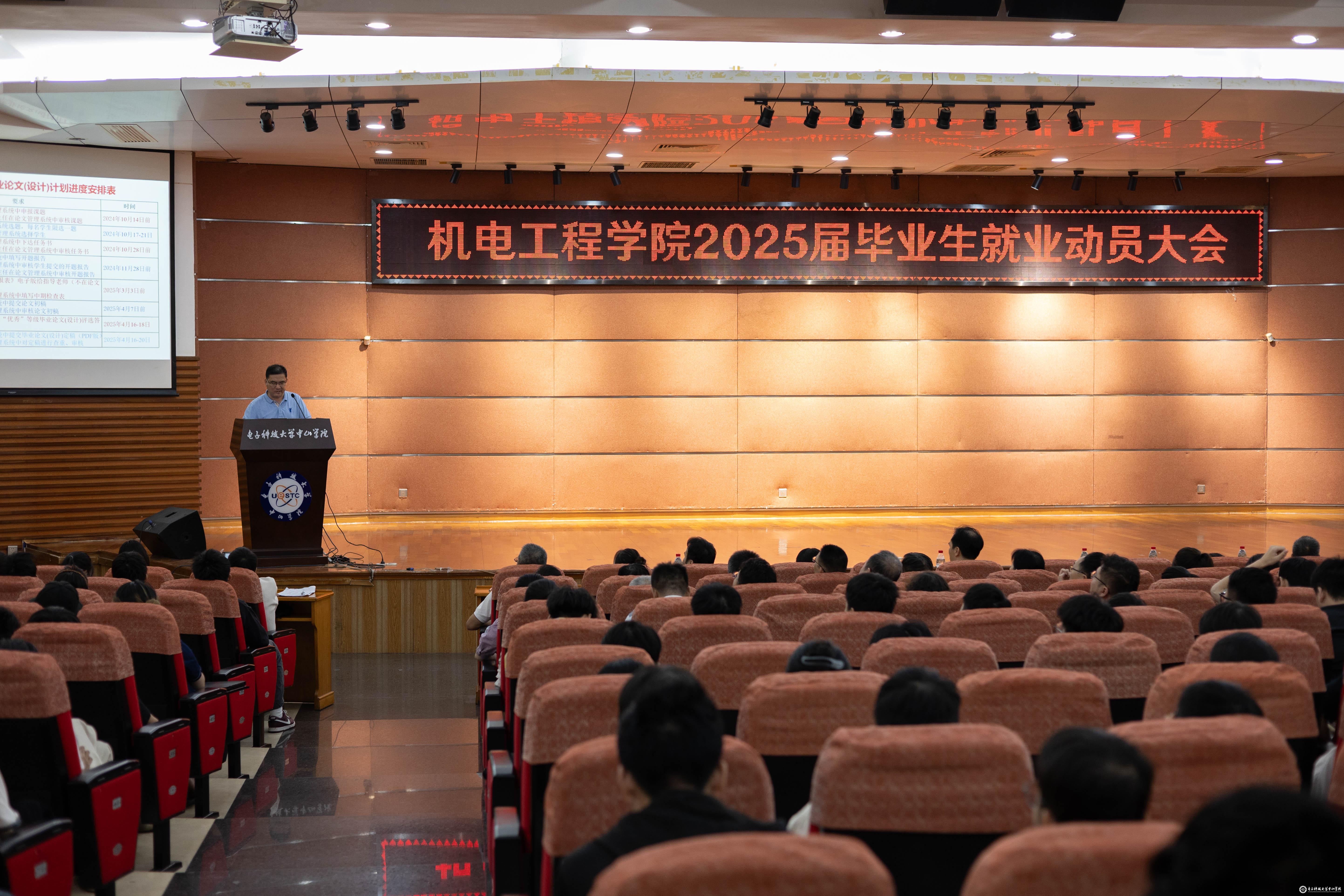为了帮助2025届毕业生认清就业形势,树立正确的就业观念,对自身的就业方向有更加全面的认识和思考,走好本科学生生涯的最后一公里,机电工程学院于10月23日在莲峰讲堂举行2025届毕业生就业动员大会。学院领导周文辉、隆麒、刘保军,各系主任、党支部书记,就业工作小组成员,全体毕业设计指导教师,毕业班辅导员和2025届毕业生共600余人出席大会。大会由学院党总支书记隆麒主持。