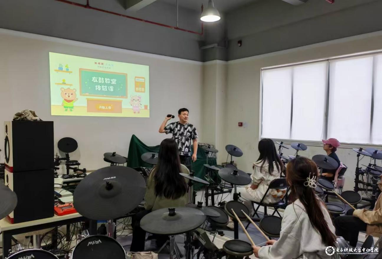 在得理乐器生产车间及实验室,同学们通过讲解了解了其管理模式及主要功能。在得理乐器活动体验室,同学们深入体验了架子鼓课堂,进一步了解公司产品。