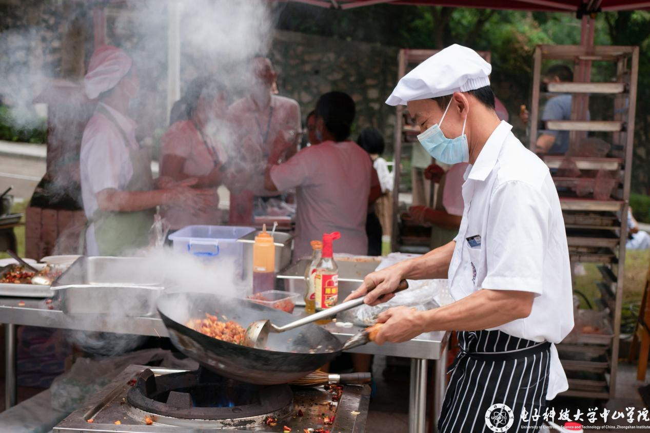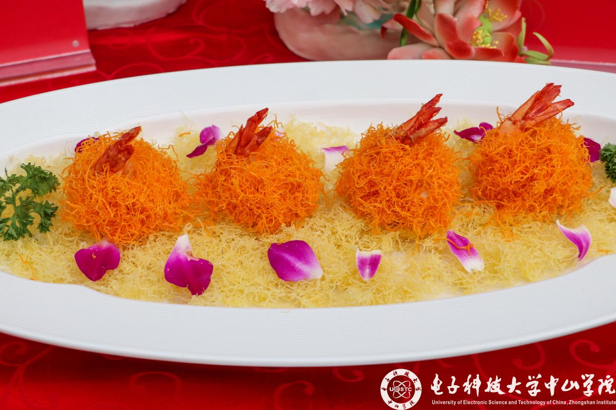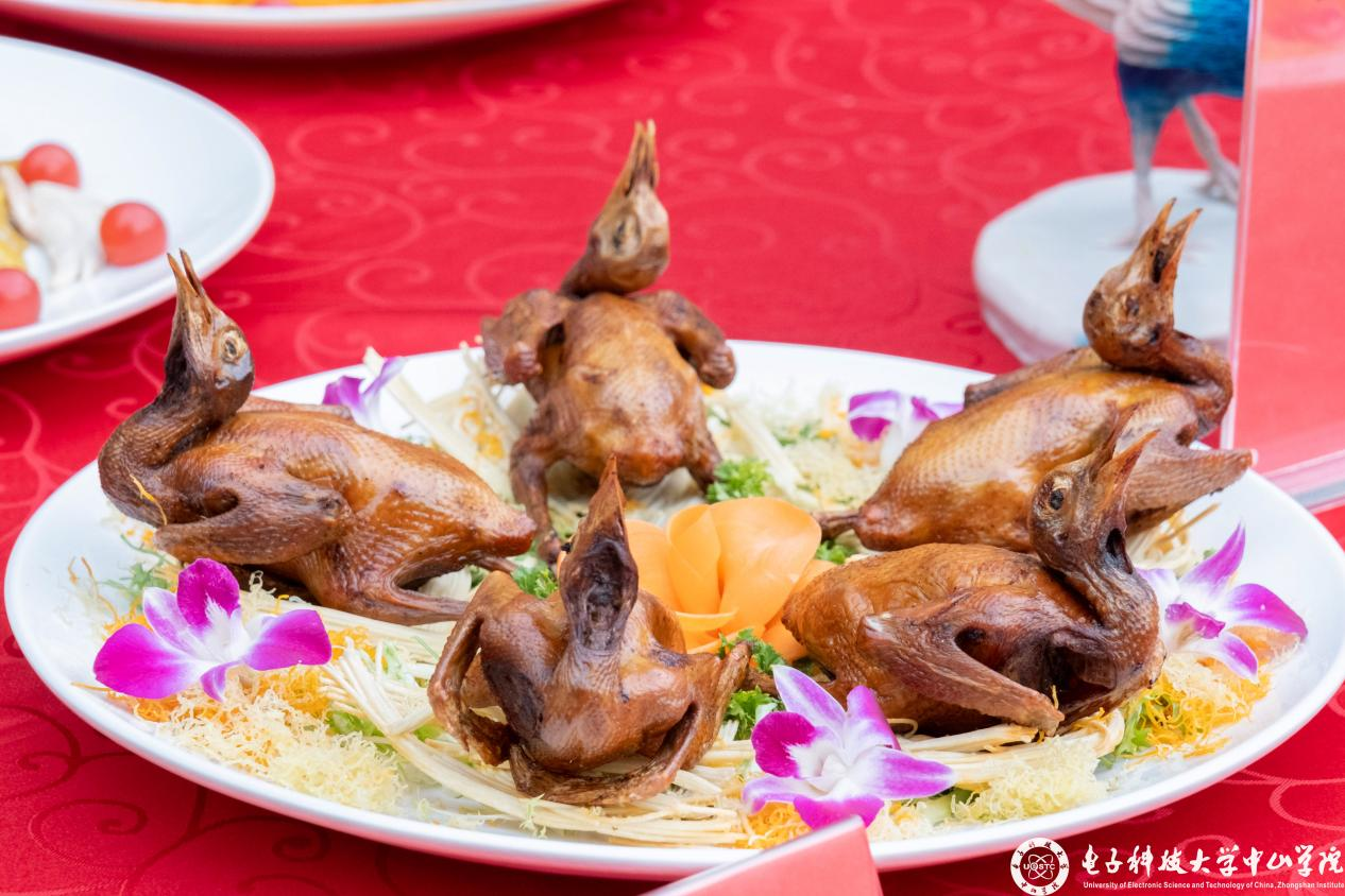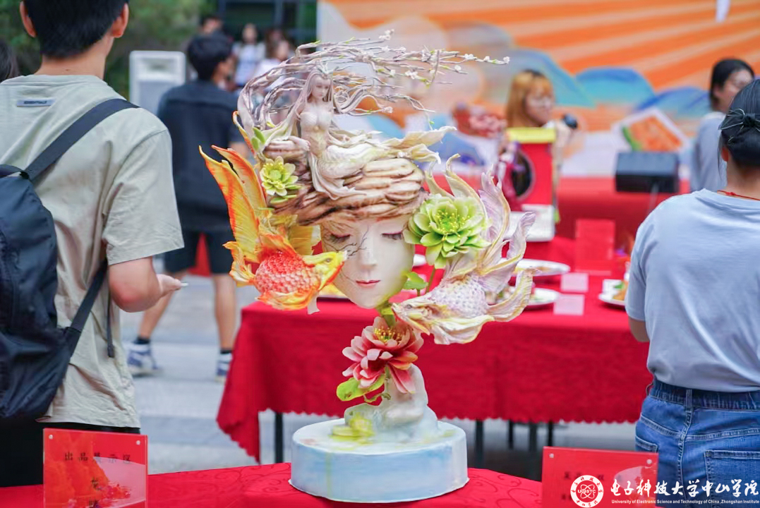 活动现场布置了四个菜品展示区,来自学校四大餐厅的24位厨师精选优质食材,各自献上自己精心准备的菜品,利用蔬菜瓜果装饰的乳鸽、水果造型的面点、春雁造型的红烧鱼、金黄酥脆的虾球......五花八门的美食,让闻香而来的师生眼花缭乱、流连忘返。活动现场还设有美食品鉴区,每个餐厅开放特色档口现场烹煮,师生们可以通过观看菜品的制作过程,进一步了解餐厅食材的品质。