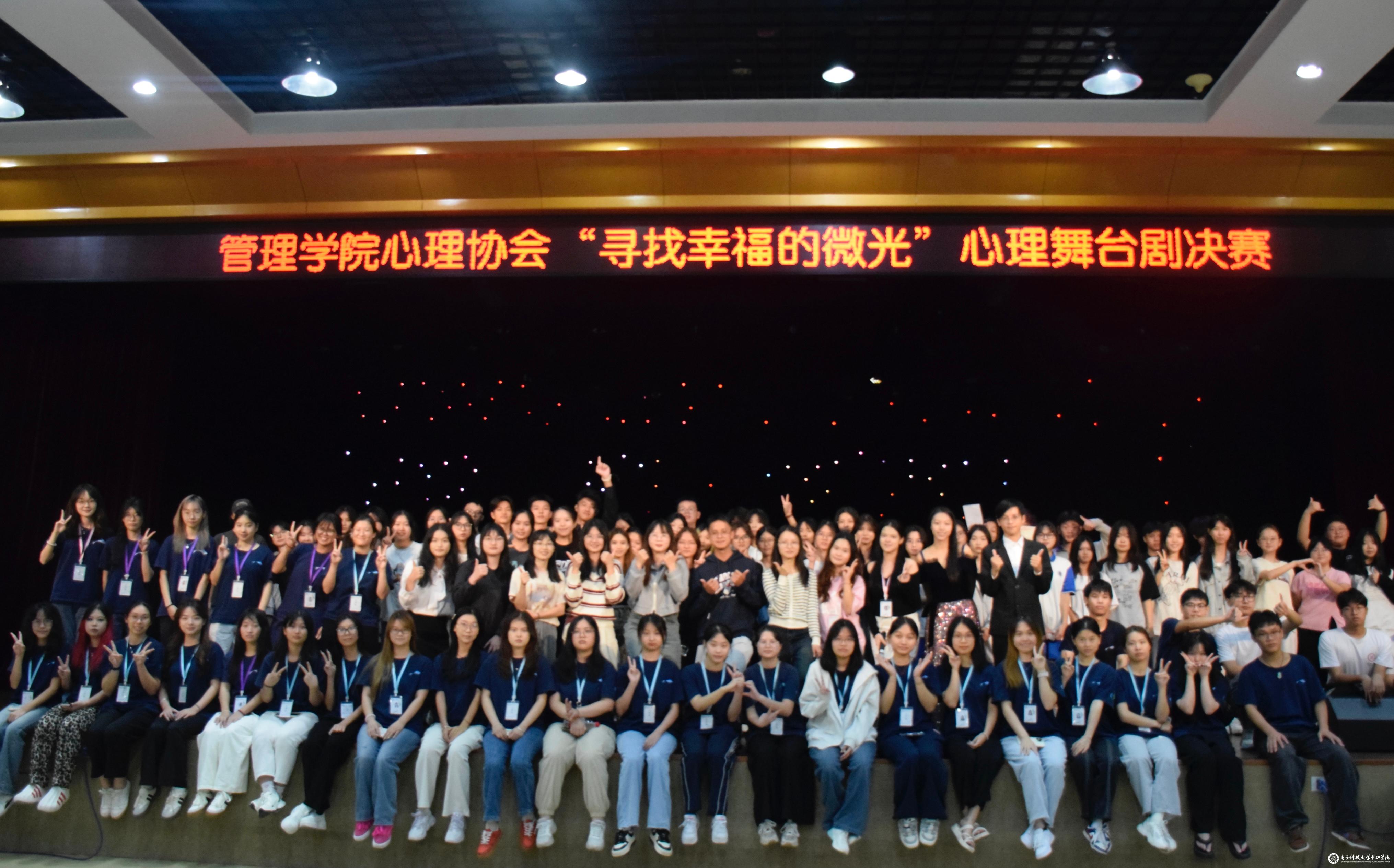 为加强对大学生心理健康的关怀与引导,助力同学们树立正确的幸福观念,有效调节情绪,管理学院心理协会于11月10日在龙腾四楼多功能厅举办了以“寻找幸福的微光”为主题的心理舞台剧活动。