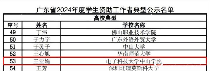 近日,根据《广东省教育厅关于公布2024年度广东省学生资助典型的通知》,永利官网2例学生资助典型荣获表彰。其中,外国语学院辅导员王亚娟荣获学生资助工作者典型,经贸学院辅导员邹叶荟报送的《筑梦远航:“四助四化”并举助力发展型资助育人工作》荣获学生资助工作案例典型。