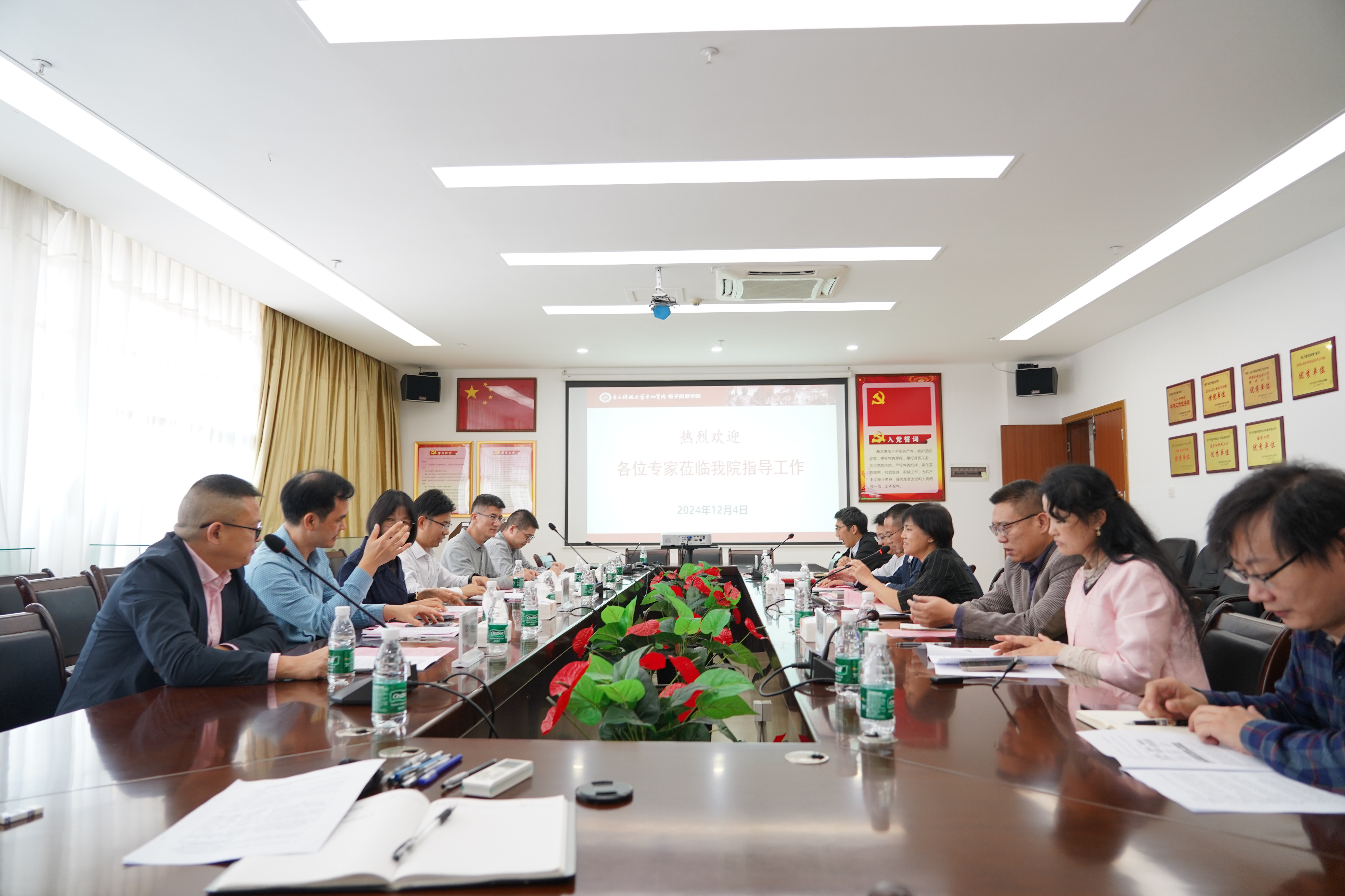 为进一步明确电子信息学院专业发展定位,提升专业契合度和人才培养适应性,电子信息学院于2024年12月4日下午召开“专业建设研讨会”,就专业建设发展规划开展专题研讨。本次活动邀请了东莞理工学院国际微电子学院党委书记兼院长任斌、珠海科技学院电子信息工程学院院长司玉娟、长春理工大学中山研究院副教授薛竣文、广东微观科技有限公司董事副总裁陈刚作为校外专家莅临指导,并特邀计算机学院院长邹昆、机电工程学院院长周文辉参加研讨。学院院长刘黎明、党总支书记高勇及专业负责人参加会议。会议由学院副院长师向群主持。